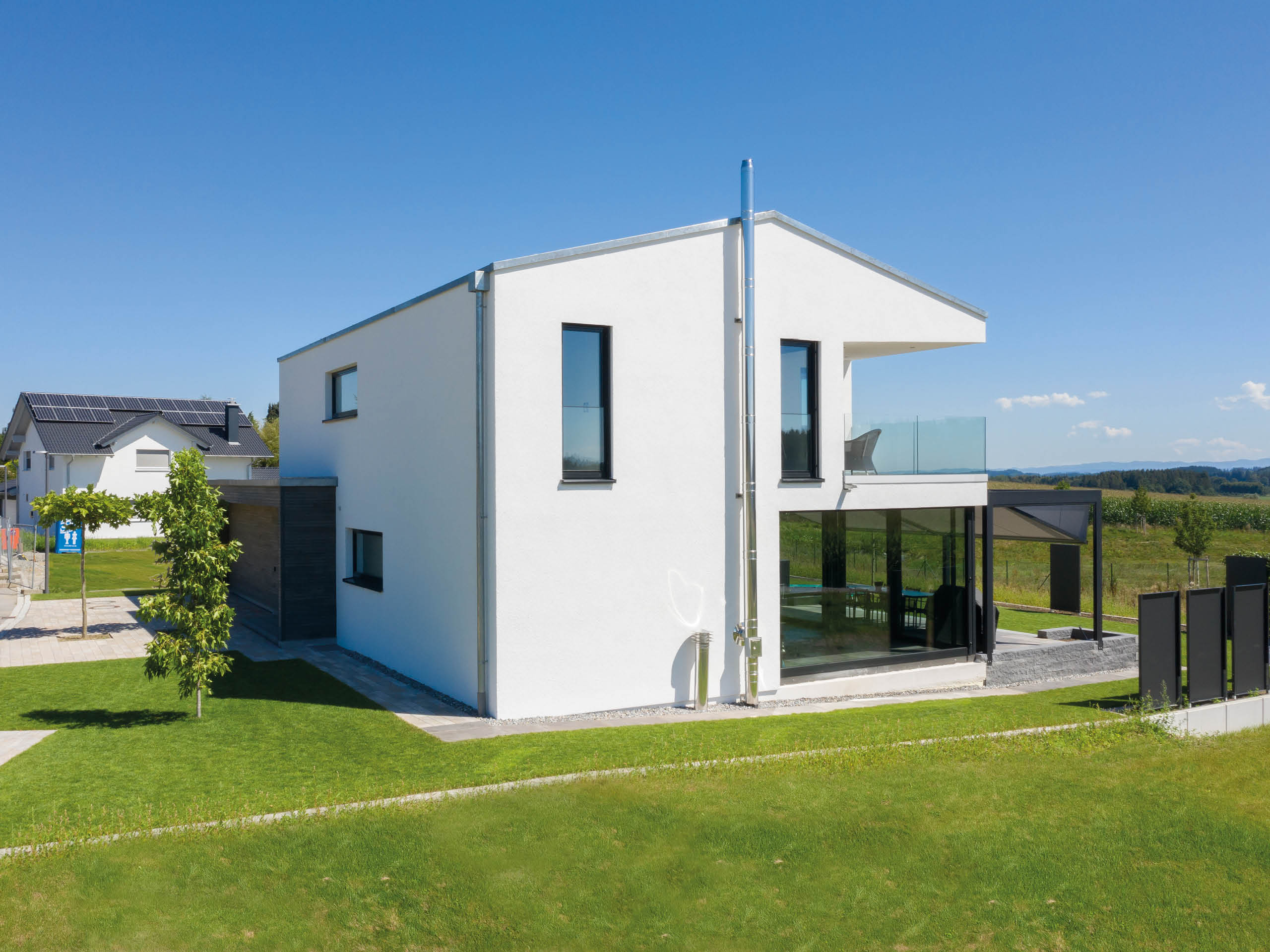 Zwar hat Bauherr Markus Holler das puristische Wohnobjekt im Bauhausstil alleinig geplant, jedoch konnte er sich während der Bauphase entspannt zurücklehnen. Das eingespielte Team der ZimmerMeisterHaus-Manufaktur realisierte sein Plusenergiehaus zügig und ohne Mängel.